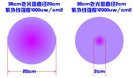 LUYOR-3130紫外線探傷燈采用了美國路陽的可變焦,只需輕輕一轉(zhuǎn),光斑隨即發(fā)生變化,38cm處小光斑可調(diào)整到20mm,紫外線強(qiáng)度高達(dá)12000uw/cm2,當(dāng)38cm處光斑調(diào)整到20cm時(shí),紫外線強(qiáng)度能夠達(dá)到1000uw/cm2,仍然滿足國家探傷標(biāo)準(zhǔn)。